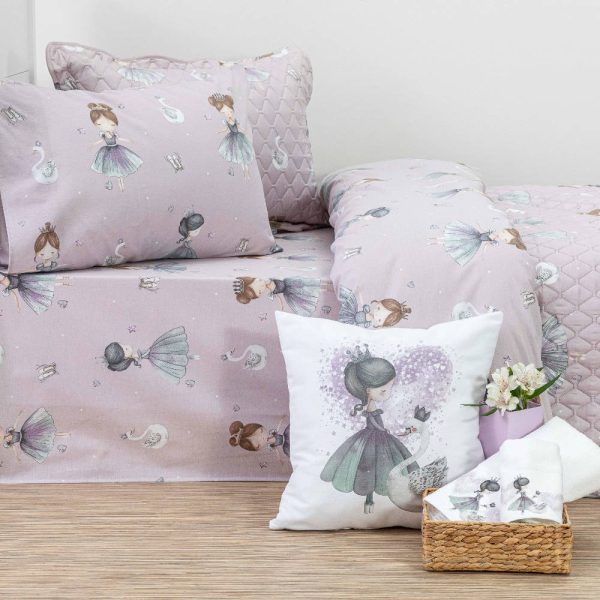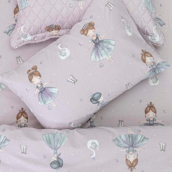 Σετ σεντόνια μονά με μαξιλαροθήκη, από ύφασμα μερσεριζέ, 144 κλωστών, 100% βαμβακερό, εμπριμέ, με παιδικό σχέδιο με μπαλαρίνες-πριγκίπισσες.