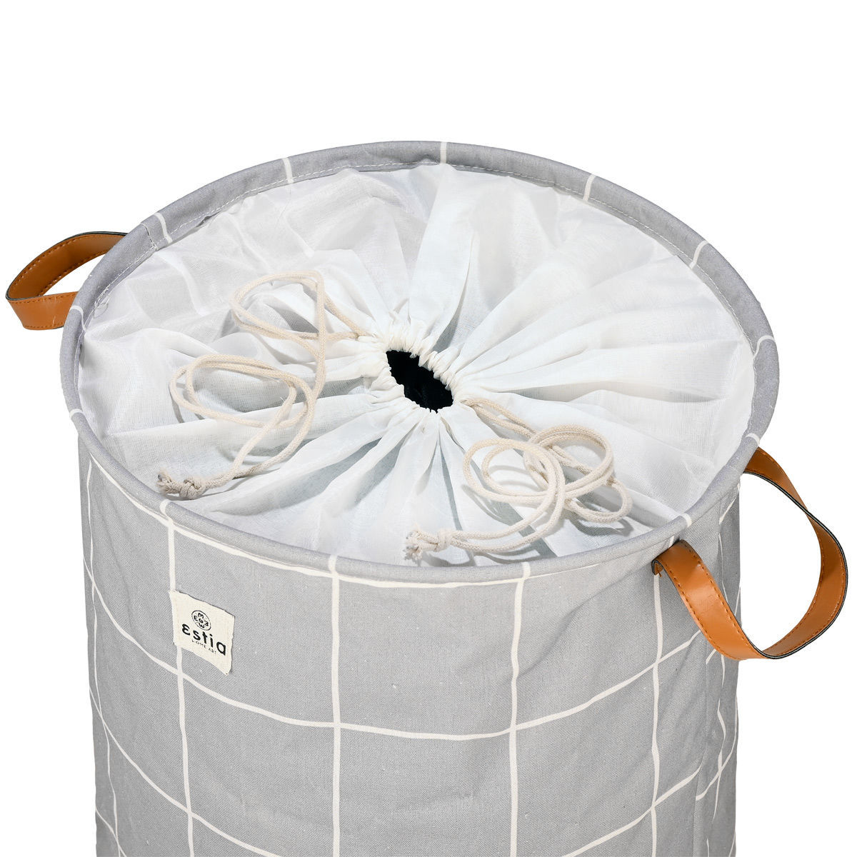 ESTIA HOME ART ΚΑΛΑΘΙ ΑΠΛΥΤΩΝ CHECKERED 60lt ΠΤΥΣΣΟΜΕΝΟ ΜΕ ΧΕΡΟΥΛΙΑ 40x40x50cm