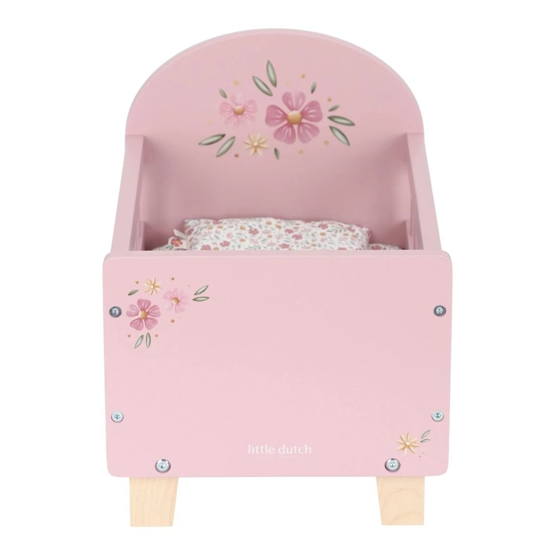 Τα παιδιά λατρεύουν να μιμούνται τους γονείς τους και να παριστάνουν τη μαμά ή τον μπαμπά φροντίζοντας τα κουκλάκια τους. Το παιχνίδι ρόλων προάγει τη δημιουργικότητα και τη φαντασία και αυτό το κρεβάτι για κούκλες είναι ένα τέλειο παιχνίδι γι’ αυτόν ακριβώς τον σκοπό. Είναι κατασκευασμένο από ανθεκτικό ξύλο και για να είναι ιδιαίτερα άνετο για τα κουκλάκια σας, συνοδεύεται από μαξιλάρι, κουβερτούλα και σεντονάκι με το υπέροχο σχέδιο Flowers & Butterflies.